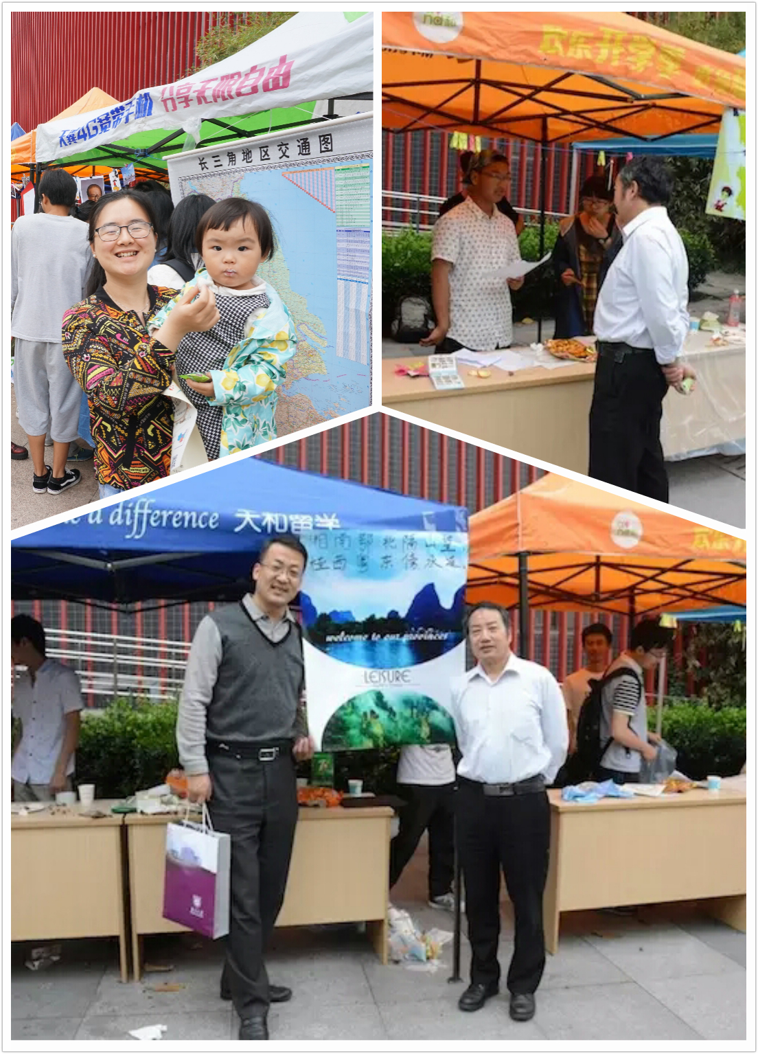 正当游客稍稍放缓脚步,展台一侧走来了地理学院的各位老师:经理鹿化煜老师、党委副书记杨得志老师、副经理柯长青老师、辅导员李岩老师、教务员王玮老师、班主任张秀英老师和张宏磊老师,光临我们的展台。老师们的到来就像是给现场又打了一记强心针,争先恐后地将老师们拉向自己所在的展台,而老师们也是十分乐意地莅临所有小组,品尝全国各地的经典美食,和大家一起做游戏,并关切地询问相关的活动组织情况,给予了足够的肯定。