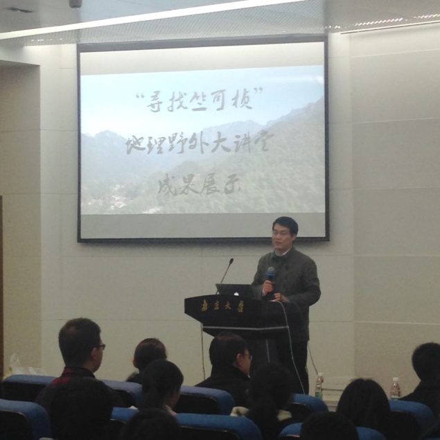 首先,由鹿化煜经理进行开场致辞,鹿经理讲述了自己对于九华山的映象,同时介绍同时间内自己所进行的地理活动,以一个前辈的身份对同学们进行谆谆教诲,并对同学们寄予深厚期望。同时,鹿经理还将“温家宝爷爷的笔记”带到了报告会的现场,并准备赠送每个小组,引得大家连连鼓掌。