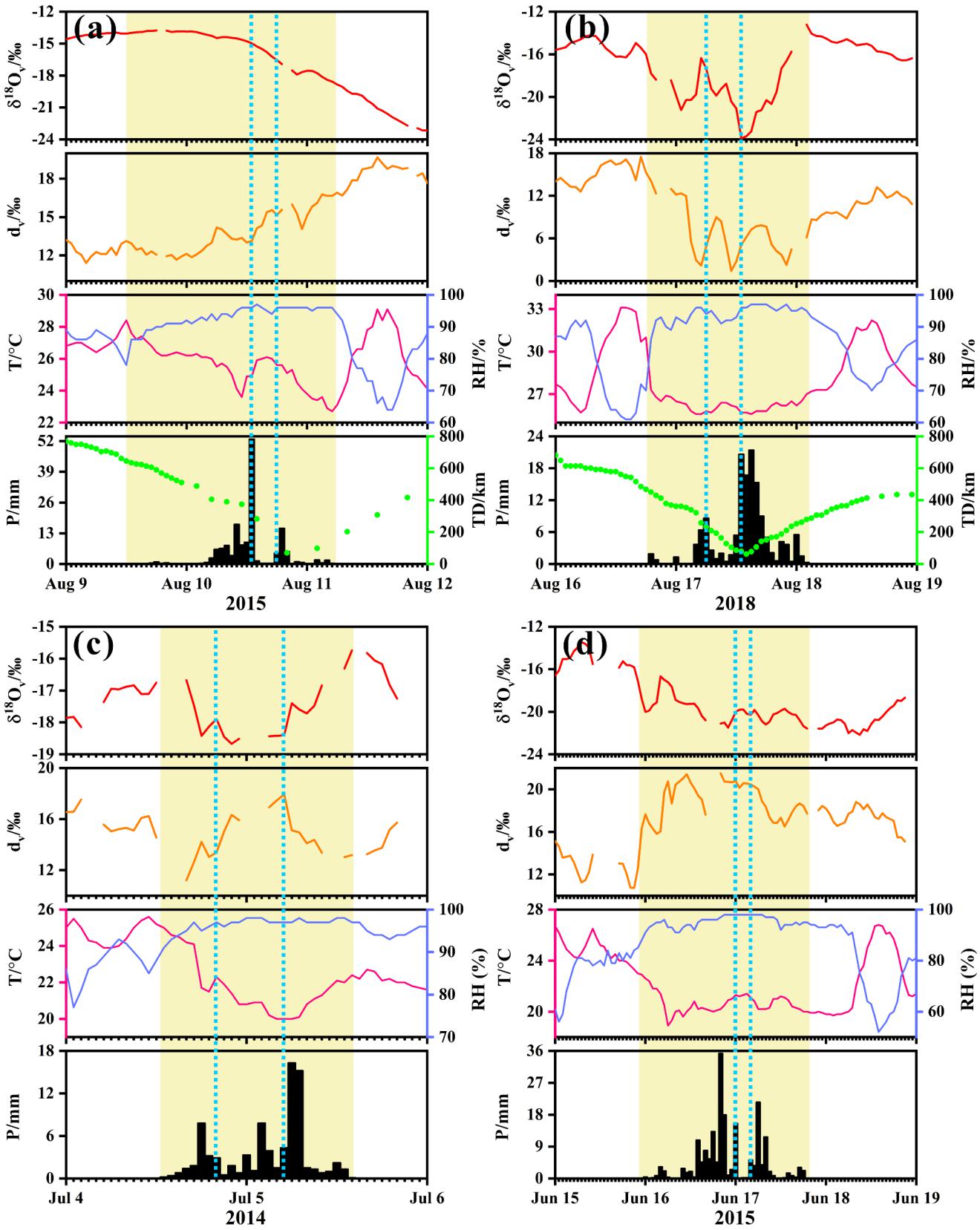 图1 暴雨事件的水汽稳定同位素组成和气象要素的变化特征