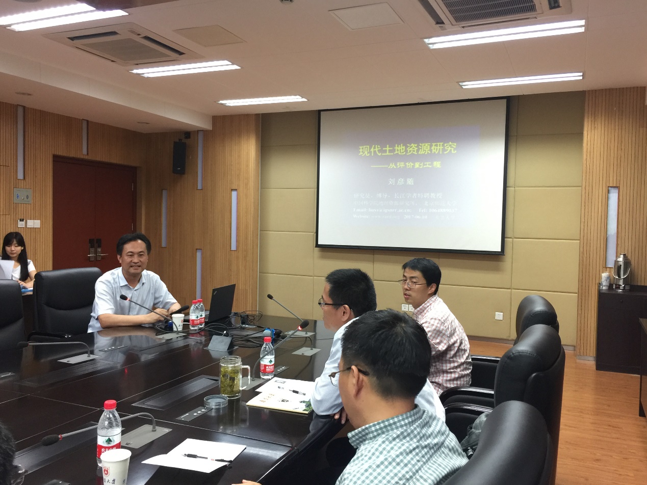 刘彦随教授首先从土地资源的内涵、功能定位和科学认知三个方面,阐述了土地资源在城乡协调发展、资源节约集约、建设生态文明和建设小康社会中的重要作用;接下来梳理了土地科学研究的系统范式,其中包括土地资源的认知体系、土地利用系统的层次体系、土地利用系统的战略体系和土地综合整治的工程体系;然后刘教授结合沙化土地整治、空心村整治、精准扶贫等案例介绍了研究团队近年来的工作,生动的体现了土地资源综合研究的特色;最后,刘教授展望了土地资源科学研究的前沿,并鼓励青年员工在科学研究中将国际前沿与国家需求相结合,努力用自己的知识去解决民生问题,为国家发展建言献策。