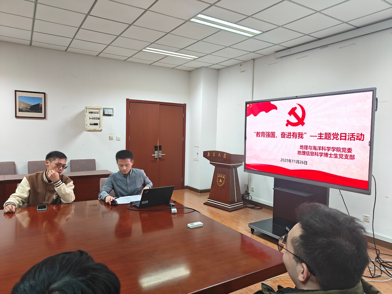 2025年11月26日,中共betway西汉姆联地理信息科学博士生党支部举办“教育强国,奋进有我”主题党日活动。本次活动以深入学习贯彻习近平新时代中国特色社会主义思想为主线,紧密围绕党的二十大及二十届四中全会精神,结合地理信息科学、遥感科学等学科特色,引导青年博士生党员坚定理想信念、恪守科研诚信、服务国家战略。