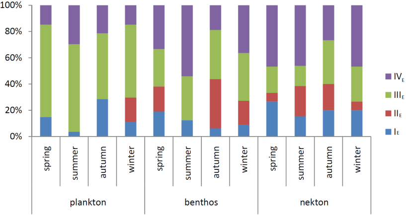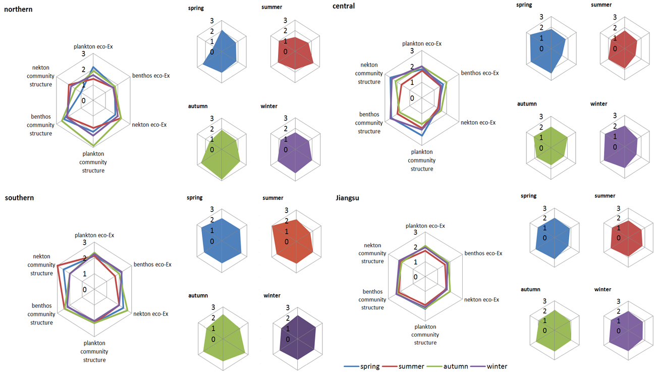 图2江苏近岸海域生态系统整体性评估季节变化和年际变化结果