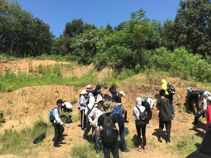 南京湖山地区地层全且具代表性,地质构造典型,化石丰富,沉积岩类型多样,地质保存良好。在老师的带领下,同学们分四条路线观察了从奥陶系高家边组到三叠系黄马青组的地层。同学们认岩石、量产状、找化石,在烈日下挥洒着汗水,在高温下探索着地学的奥秘,在地层中体验着地球历史上沧海桑田的变迁。晚上老师们的讲解、野外记录本的整理和地层剖面图的绘制,更加深了同学们对地质知识的理解。