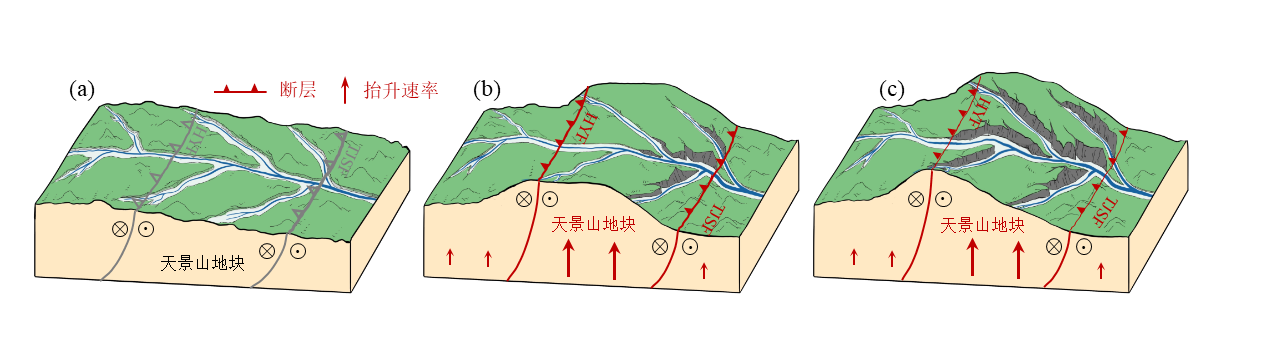 高原内部的高海拔-低起伏面(一般称之为夷平面)如何在百万年乃至千万年时间尺度,不因侵蚀而长期稳定存在,是地球科学领域关注的热点话题。前人研究强调了干旱化、高频滑坡、抗侵蚀能力强基岩的出露以及局部山脉快速隆升等因素对河流侵蚀波溯源侵蚀过程的抑制作用。青藏高原的生长过程是多阶段的,这种差异性构造隆升对侵蚀波的传递可能也有影响;但高原东北部向外生长过程导致的空间异质性构造活动背景下,河流裂点(侵蚀波)的迁移过程仍不清楚。