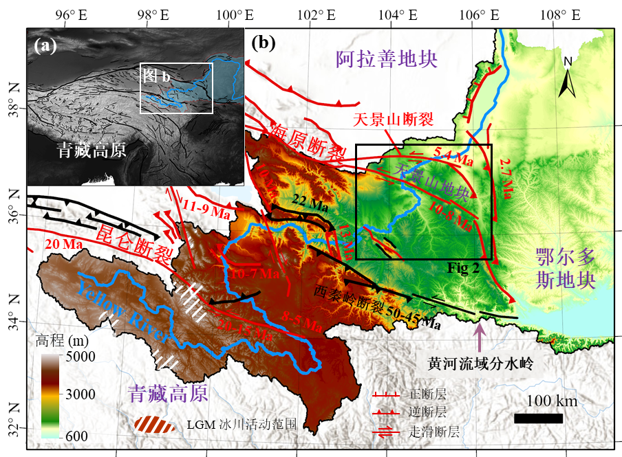 本研究以青藏高原东北缘的次级地块—天景山地块为例(位置见图1),探讨了高原东北部扩张过程中的河流裂点的发育、演化及相应的瞬态地貌过程。