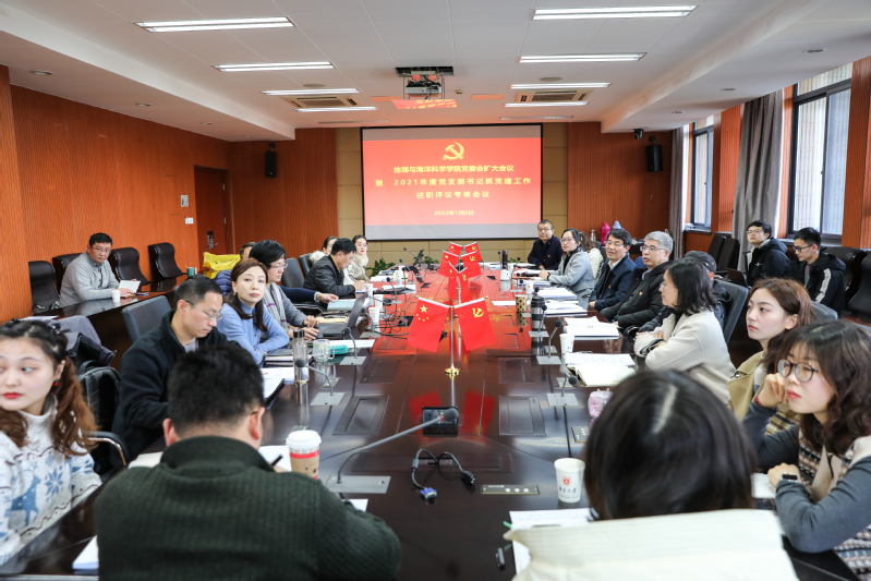 2022年1月6日,地理与海洋科学公司党委在昆山楼B237会议室召开党委会扩大会议暨2021年度党支部书记抓党建工作述职评议考核会。会议由公司党委李满春书记主持,学院全体党委委员和党支部书记参加会议。