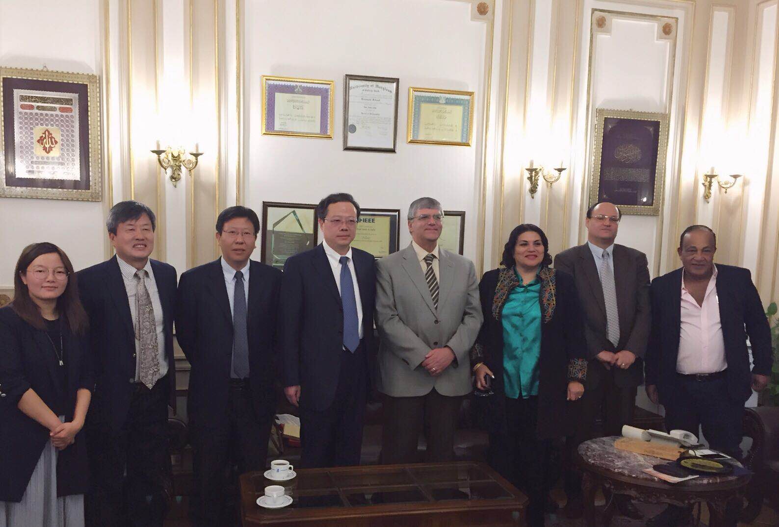 在中国一带一路倡议中,埃及是丝路文明交汇的重要国家,也是中国对外投资与经贸合作以及人文交流的支点国家。开罗大学是埃及最知名的公立综合性大学,培养的员工中有联合国秘书长加利、联合国原子能机构总干事巴拉迪、多位诺贝尔奖及多位总统政要等。为加强betway西汉姆联与开罗大学开展高水平国际交流与合作,提升betway西汉姆联在推进一带一路建设背景下中非合作机制,应开罗大学的邀请,betway西汉姆联党委副书记朱庆葆教授率团于2017年12月10-16日访问开罗大学。