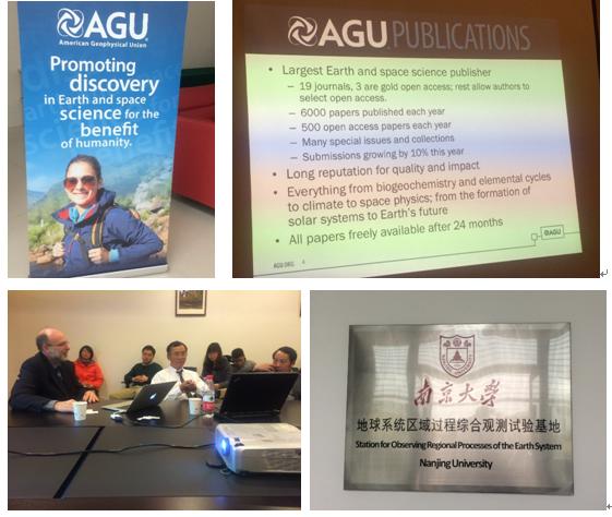 上午,宣讲会大会在大气科学学院举行,大气科学学院、betway西汉姆联、地球科学与工程学院等相关院系的师生参加了宣讲会。下午宣讲会分组讨论会分别在大气科学学院、betway西汉姆联、地球科学与工程学院进行。AGU出版集团负责人 Dr. Brooks Hanson(AGU, Director of Publications)和美国伊利诺伊大学教授、<水资源研究>期刊编辑Dr. Cai Ximing(Editor of Water Resources Research,Colonel Harry F. and Frankie M. Lovell Endowed Professor in Civil and Environment Engineering, University of Illinois at Urbana-Champaign)光临本院介绍了AGU出版集团的主要刊物、对期刊论文的要求、投稿与审稿过程等方面的情况,并回答了师生们关于论文撰写、投稿与修改等方面的问题。其中,蔡教授对中国学者在水文水资源研究方向顶级期刊WRR上发表研究论文面临的主要问题进行了针对性的回答。座谈会由张兴奇副教授主持,地球科学与工程学院王栋教授、本院副经理柯长青教授、史江峰副教授、刘绍文副教授、金晓斌副教授、马春梅副教授等老师以及地球科学与工程学院与本院相关专业的博士生与硕士生参加了座谈会。会后,美国地球物理联合会AGU出版集团一行参观了位于校园内的betway西汉姆联地球系统区域过程综合观测实验基地和校史博物馆。(betway西汉姆联)