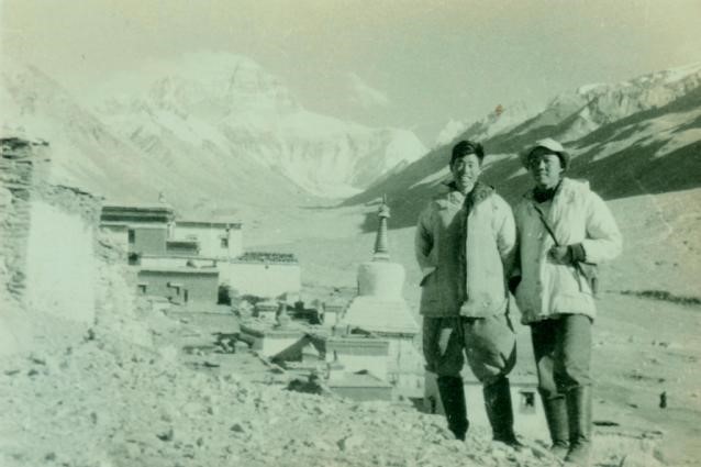 王富葆教授(左)在珠穆朗玛峰考察(1955)