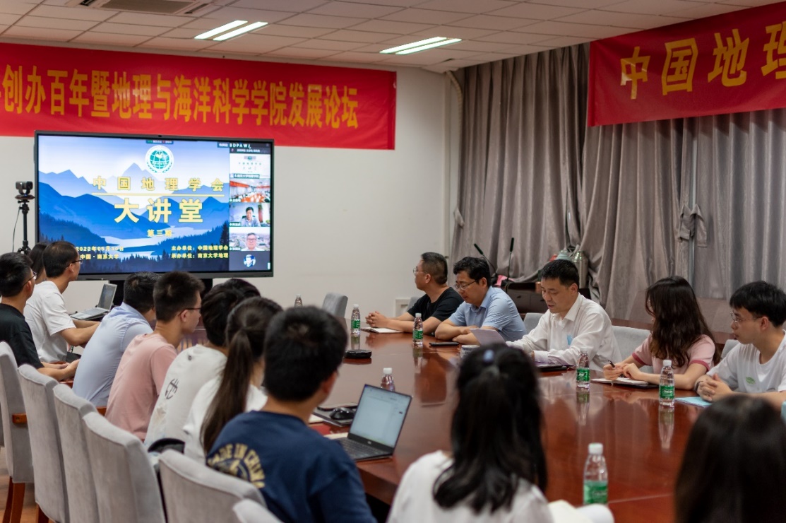 张永光教授和徐志伟副教授的报告引起了与会人员的极大兴趣,报告会之后,两位老师与在座师生以及线上参会同仁进行了交流和深入讨论。在场的师生们认真学习了报告内容,进一步开阔了学术视野。最后,张国友副理事长兼秘书长总结发言,他感谢两位青年学者为地理学师生做了精彩报告,对中国地理学科技工作者攀登科学高峰、服务国家建设提出了殷切的期望。中国地理学会大讲堂第三期在热烈的掌声中落下帷幕。